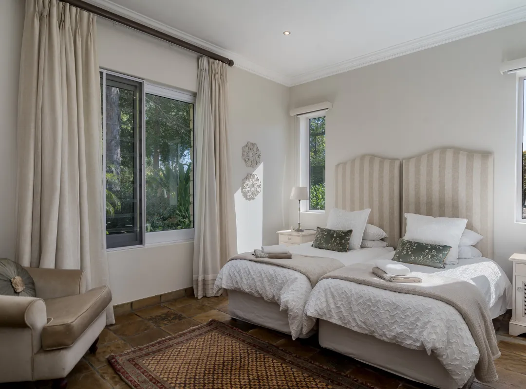The Olivier Suite embodies elegant simplicity, where soothing tones of gray, white, and cream create a haven of tranquility. This deluxe retreat features sweeping views of the gardens below providing a graceful frame for the spectacular Stellenbosch landscape. Here, contemporary comfort meets classical sophistication, offering a private sanctuary where guests can soak in the natural beauty of the Cape Winelands from their own elegant hideaway.